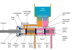 - The master cylinder pushes hydraulic fluid